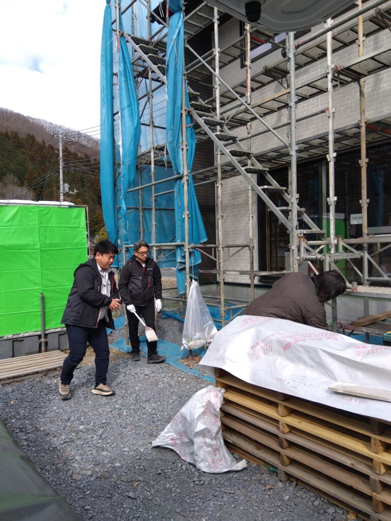 先日、社員数名で施工中の新築現場を回り、清掃と現場確認を行いました。